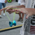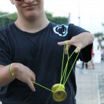 Il pomeriggio siamo tornati, dopo un pranzo che ci ha messo letteralmente K.O., all’evento per fare l’ultima esibizione che, per me, è andata malissimo: il vento mi ha fatto annodare tutto mentre facevo degli slack e il sudore e l’umidità davano ancora più fastidio. La cosa peggiore è che abbiamo rischiato di far sdingare tutti i nostri yoyo perdendo una partita a street soccer contro bambini di 6 anni; per fortuna i genitori li hanno fatti ritirare altrimenti avremmo perso di sicuro. Nonostante ciò ci siamo divertiti lo stesso.